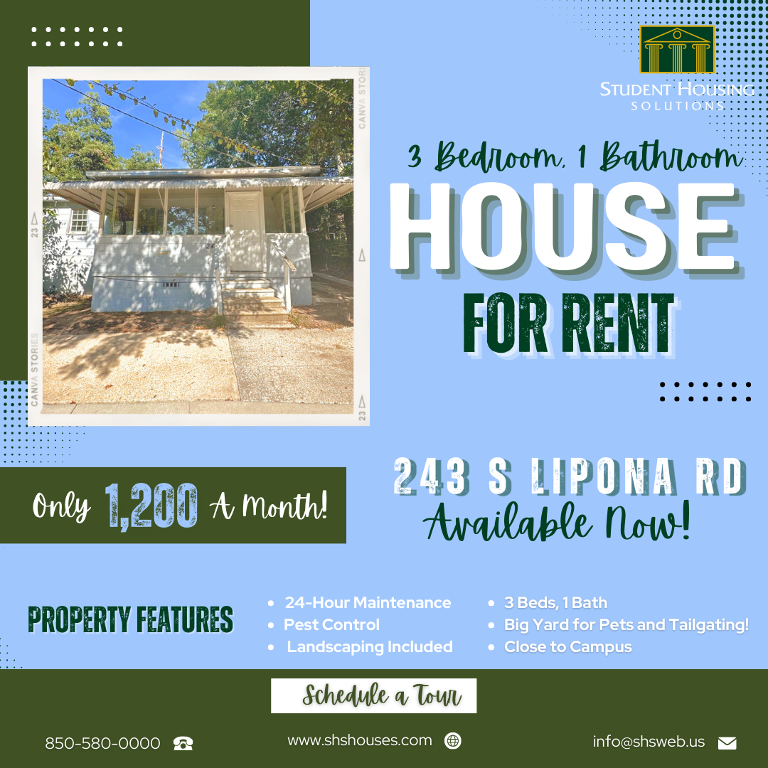 Quaint 3 bedroom house, less than 1 mile to FSU. Original oak floors throughout. Spacious yard for your pets! Close to Publix, Golds Gym, Bills Bookstore, Momos and Gordos. Full time management and maintenance staff at your service.