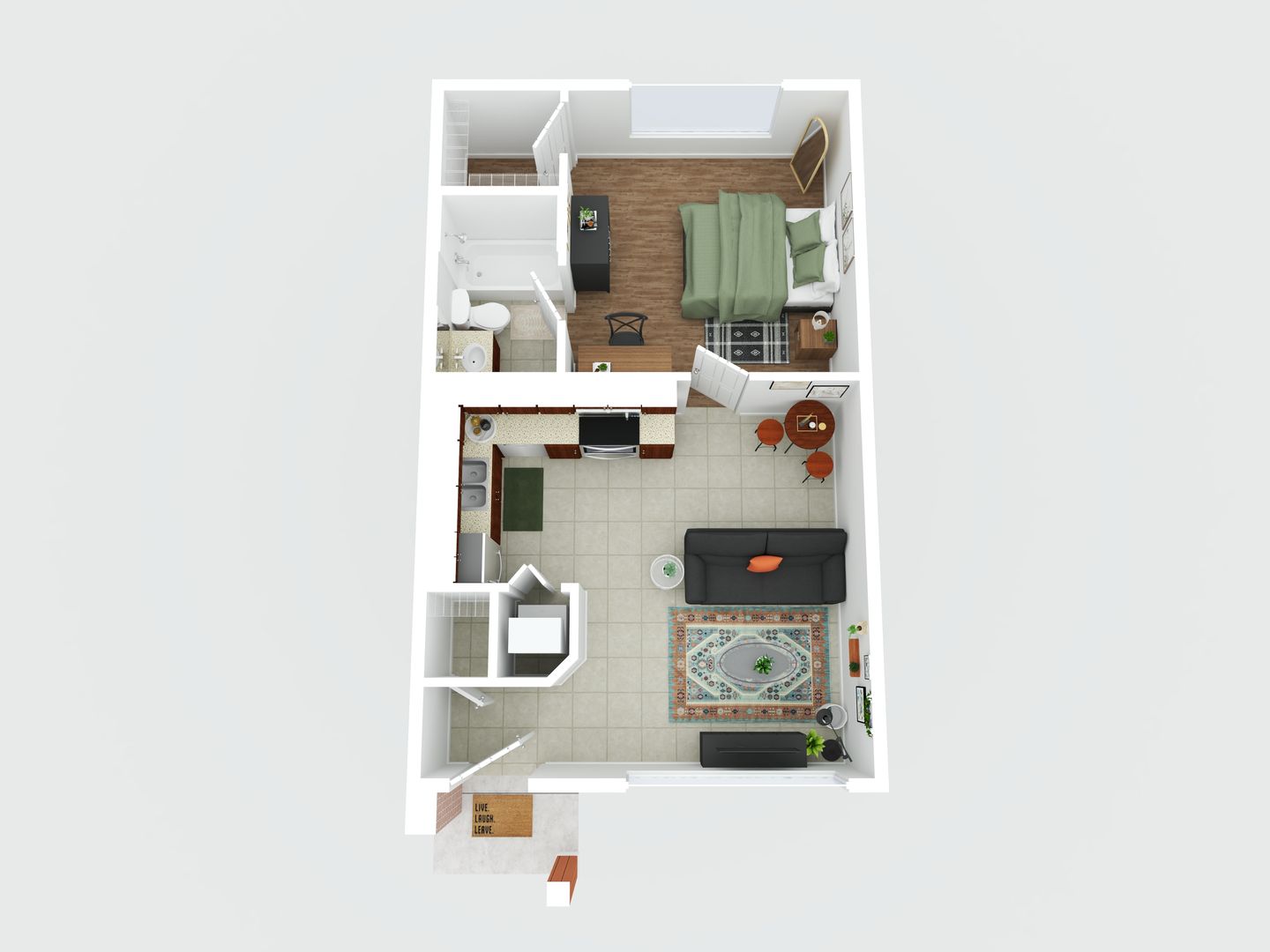 Live in style at Villa Lucia, where our one-bedroom apartments are designed for today’s student lifestyle. Each true one-bedroom features modern finishes, stainless steel appliances, included internet, and an in-unit washer and dryer for total convenience. Enjoy walk-in closets, open living areas, and furnished options available to make your move-in simple.