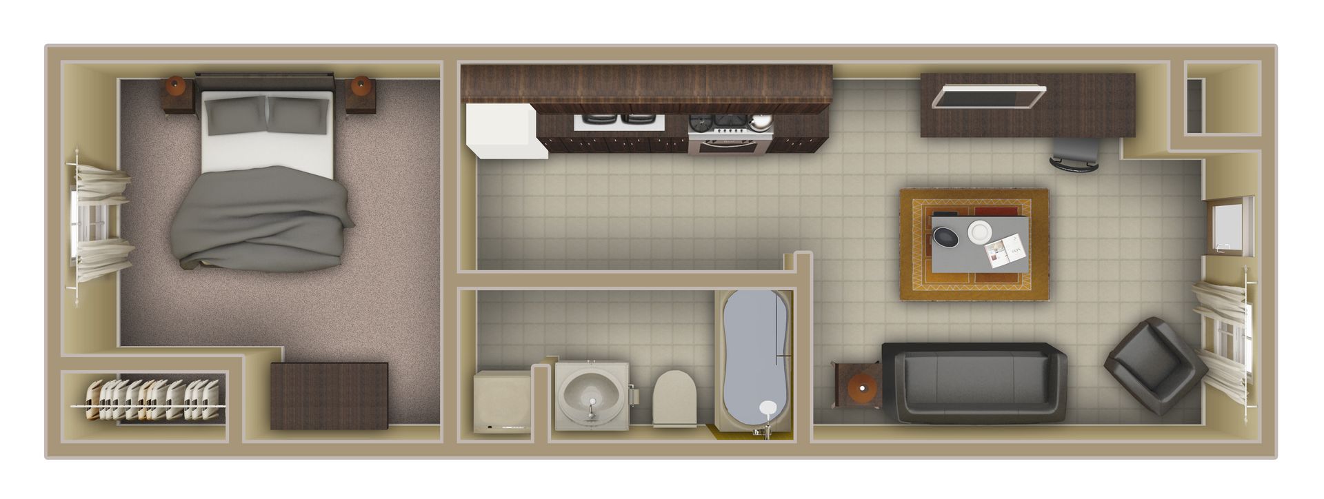 Live in style at University Lofts, just across the street from the FSU Student Union. Our beautifully renovated 1-bedroom, 1-bath Long floorplan blends modern updates with a loft-style — featuring sleek finishes and industrial vibes that make your apartment truly one-of-a-kind.